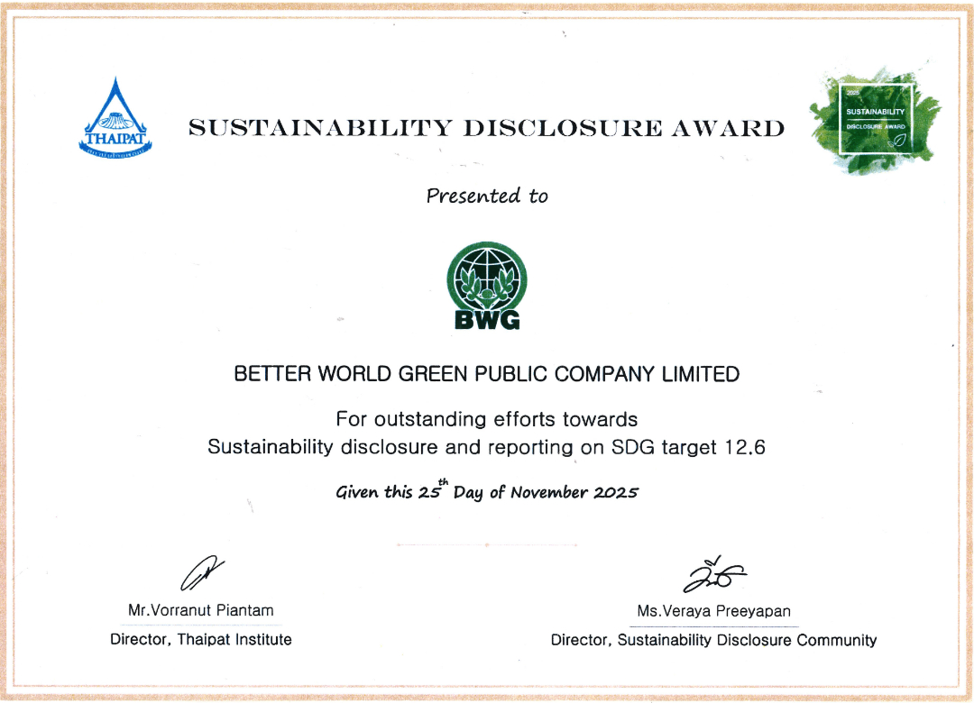 “เบตเตอร์ เวิลด์ กรีน” รับรางวัลเกียรติคุณ “Sustainability Disclosure Award 2023”